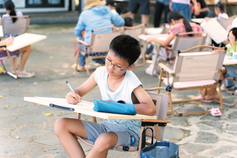 活动中,青少年在龙华区昌学动漫古村专心地进行户外写生。